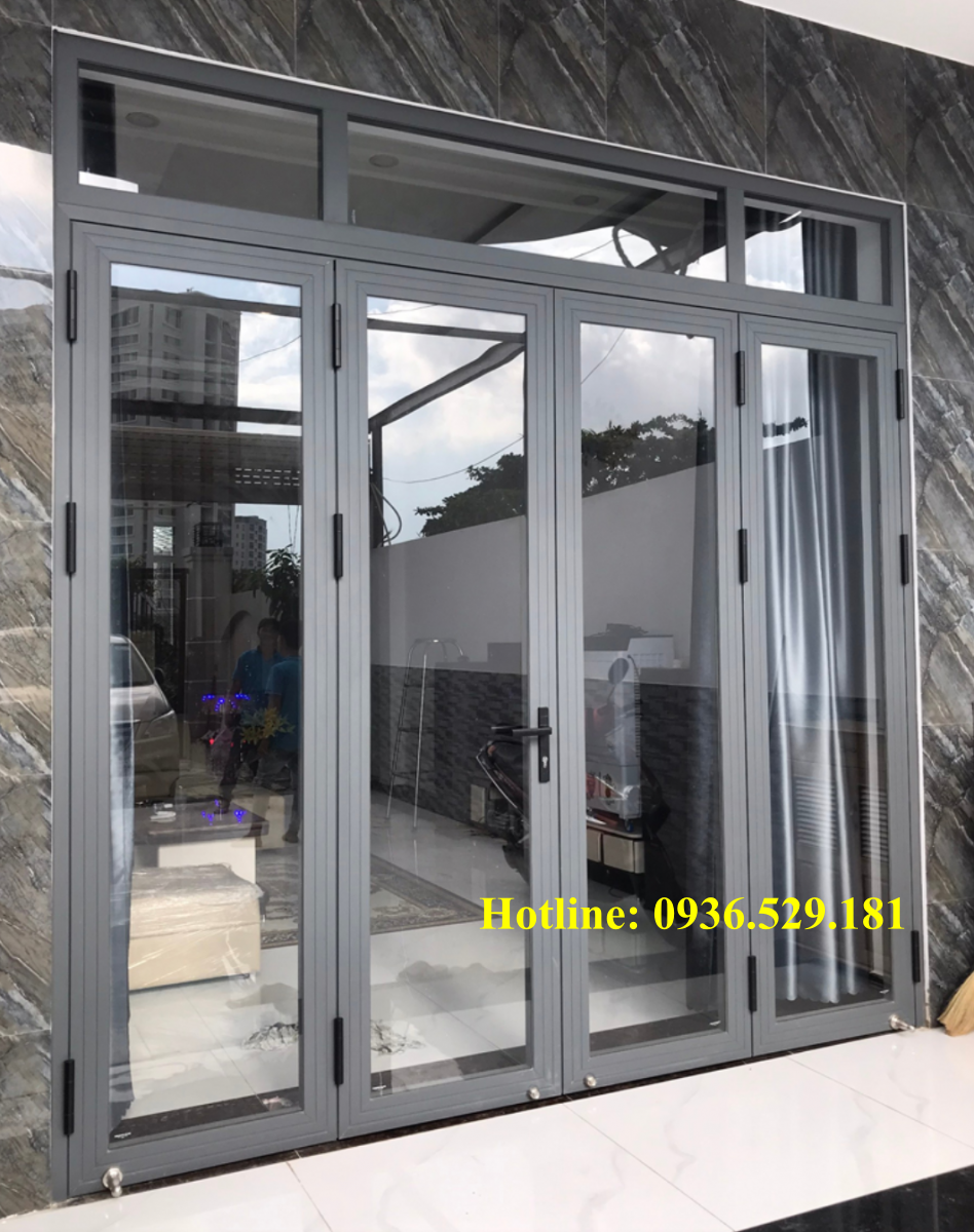 cửa di 4 cánh nhôm Xingfa màu ghi