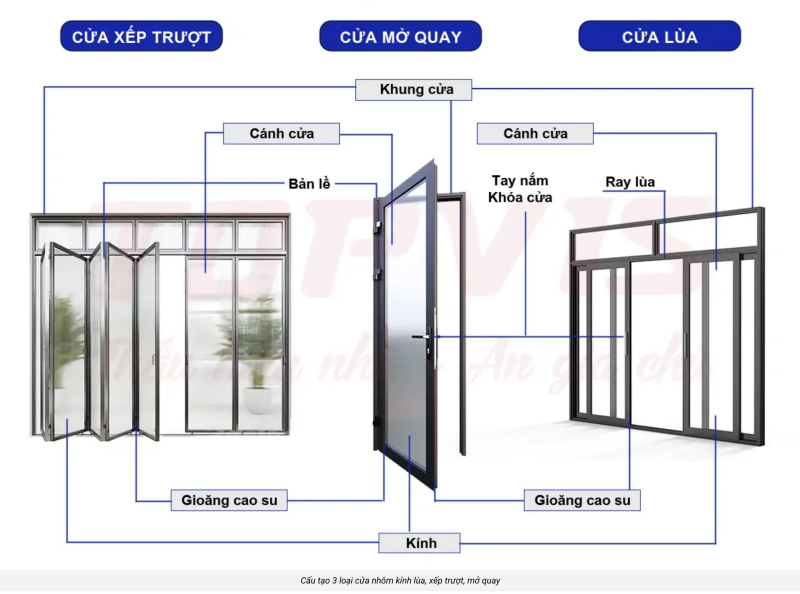 Đảm Bảo Độ Kín Khít: Khung nhôm được thiết kế để kết hợp với hệ gioăng EPDM chuyên dụng, giúp cửa khi đóng lại sẽ kín khít tuyệt đối, ngăn nước mưa, bụi bẩn và không khí lọt vào nhà.