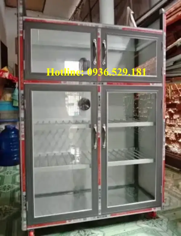 Tủ chén bát nhôm kính