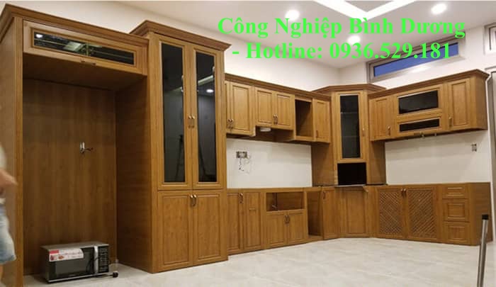 tủ bếp nhôm kính vân gỗ