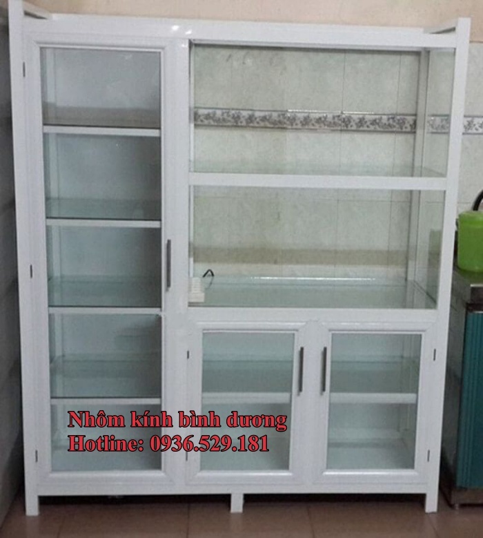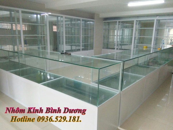 Các loại tủ nhôm kính bình dương như tủ nhôm, tủ kính, tủ bán hàng, tủ quầy thuốc tây, tủ trưng bày, tủ bánh kẹo, tủ điện thoại,... Chất liệu kính dày 5mm và nhôm được sơn tĩnh điện. Giá tính theo mét vuông cho mỗi mặt. |